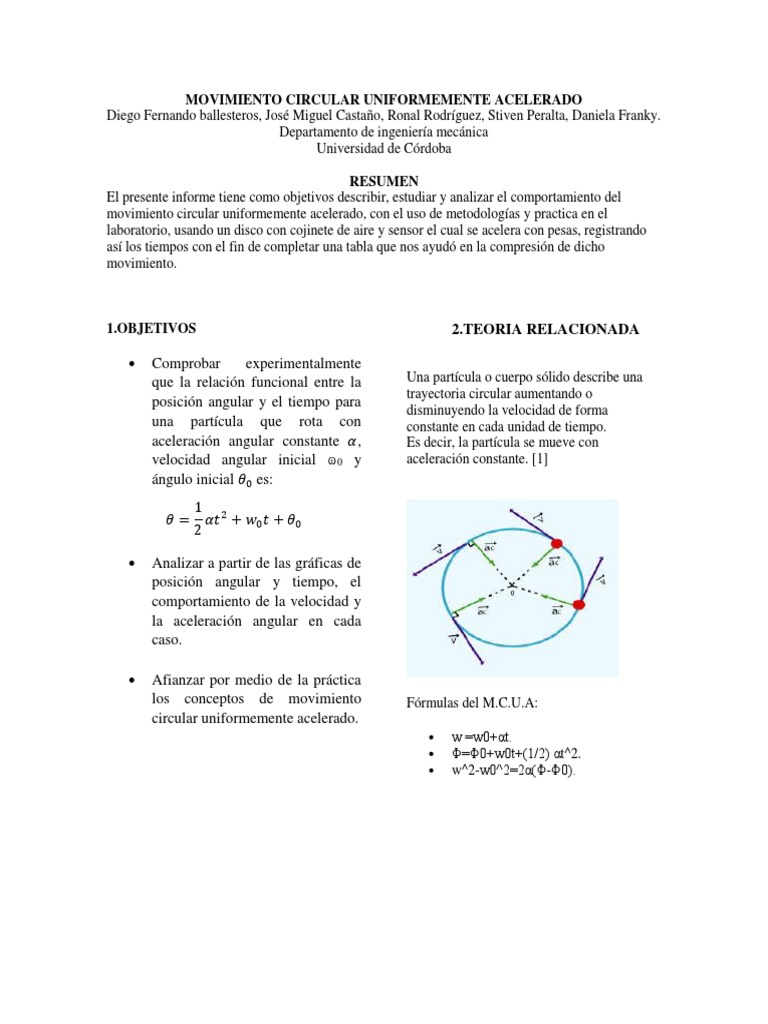 MOVIMIENTO CIRCULAR UNIFORMEMENTE ACELERADO .pdf | Aceleración ...